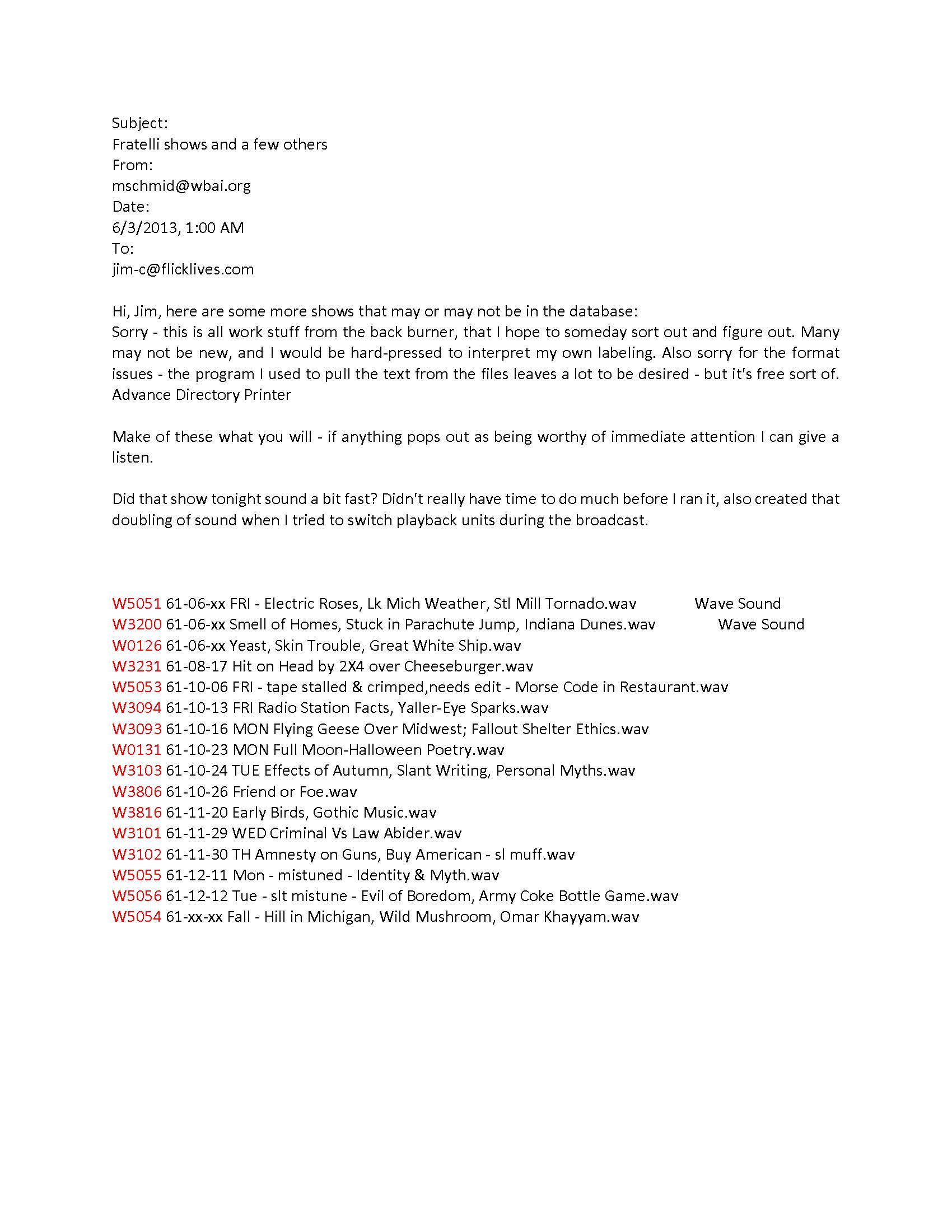 Max's super secret page of shows never played and not on internet - maybe. . .