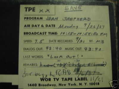 "This is an original program tape of a Jean Shepherd program. It was made on the standard WOR Ampex 350's that were in each control room…in the early 70's Reel is on a NAB hub.